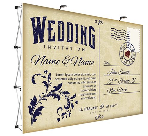 La medida del photocall es de 220 x 220 cm, fácil montaje y transporte.
